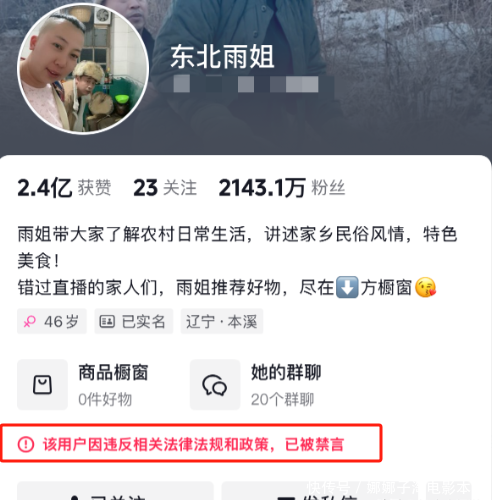 被戳穿后,东北雨姐的行状也一度遇阻,以至还被官方点名禁言!