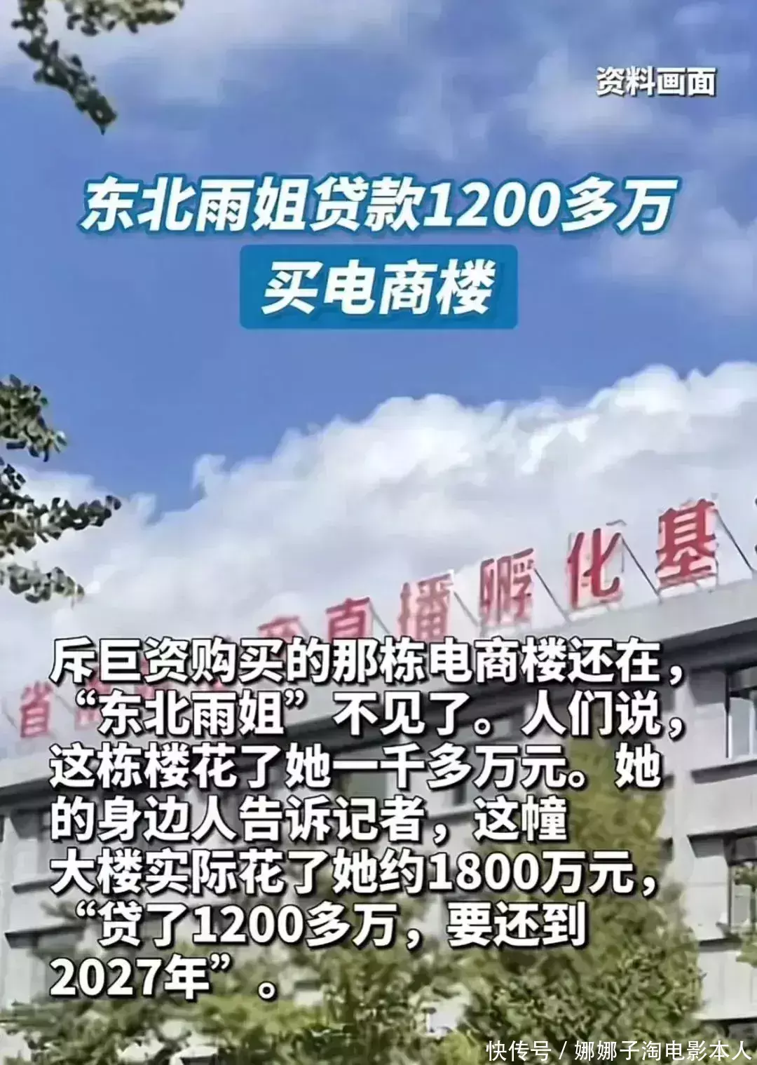 传闻,这栋大楼足足要有1800万,而东北雨姐亦然贷了1200万的款。