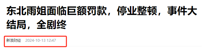 【3】2024年10月13日发布 官方媒体 新浪财经《东北雨姐濒临大齐罚金,破产整顿,事件大结局,全剧终》