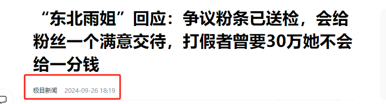 澳门百家乐赢钱秘诀【4】2024年9月26日发布 官方媒体 极目新闻《“东北雨姐”回复:争议粉条已送检,会给粉丝一个舒畅交待,打假者曾要30万她不会给一分钱》